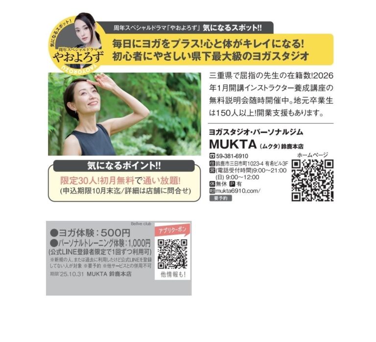 Yoga MUKTA 松阪店が2026年3月、リニューアルオープン!