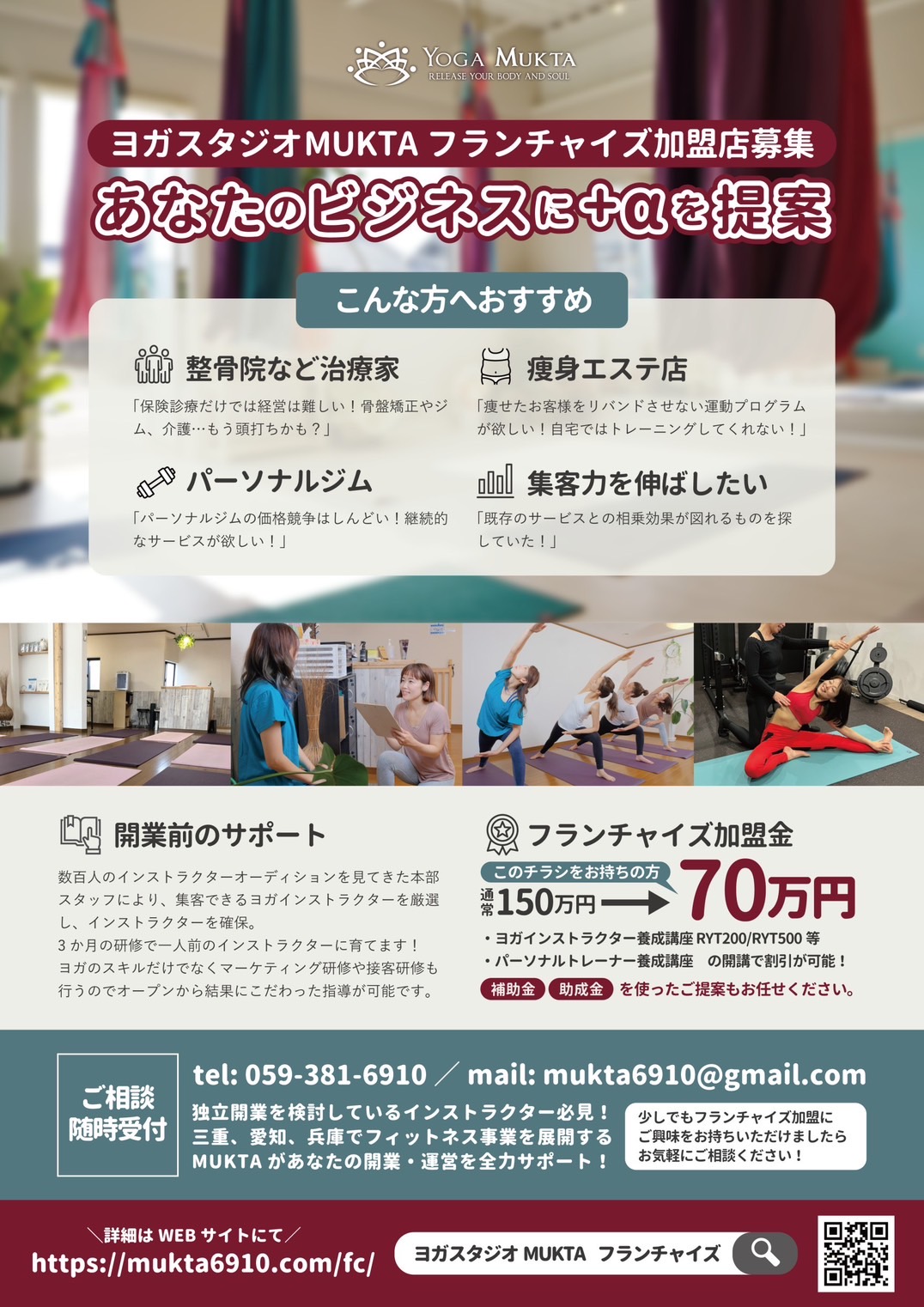 加盟金やロイヤリティなどはMUKTAまでお問い合わせください。